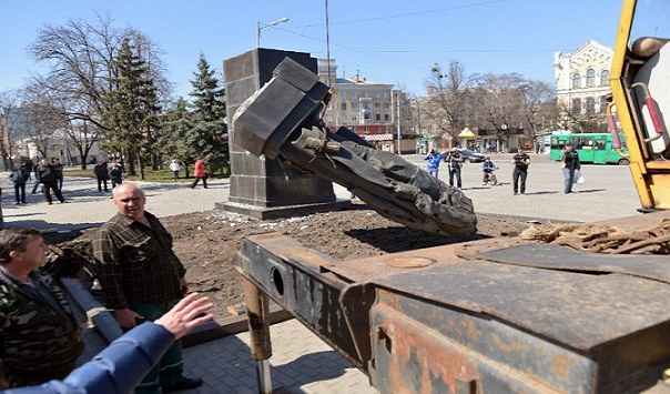 تخریب آثار هنری دوره‌ی کمونیستی در اوکراین بعد از تصویب قانونی جنجالی در پارلمان این کشور