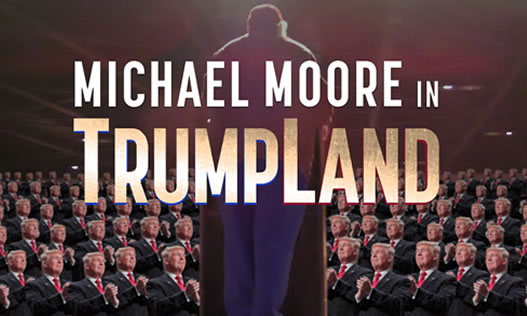 به گزارش خبرگزاری آلمان، مایکل مور ۶۲ ساله در صفحه توئیتر خود نوشت، «مایکل مور در ترامپلند»، فیلم جدیدش، قرار است سهشنبه آینده در نیویورک بهنمایش در آید. در اطلاعیه سینمایی این فیلم آمده است: مور «چند هفته مانده به انتخابات ۲۰۱۶ با جسارت و طنز یک شوی تک نفره، مستقیماً وارد قلمرو دشمن شده و به عمق “ترامپلند” نفوذ میکند.»