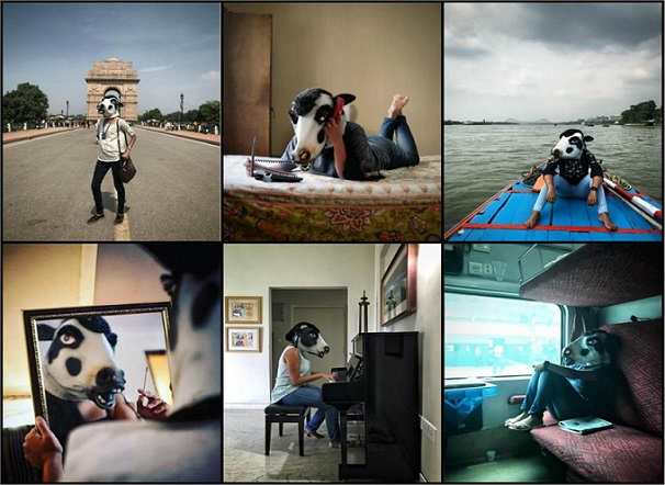 مجموعه عکسی از سوجاترو گوش، هنرمند فمینیست ۲۴ ساله اهل کلکته، از یک سرگاو استفاده کرده تا این بحث را راه بیندازد که چطور حیوانات مقدس حقوقی دارند اما امنیت زنان نادیده گرفته می‌شود و آزار جنسی افزایش می‌یابد؟