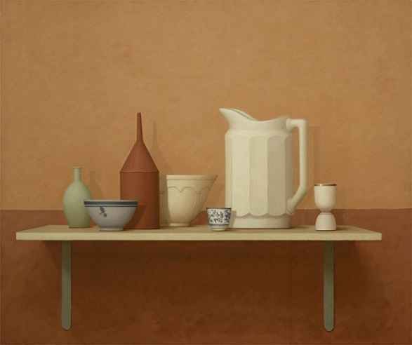 بیلی میگوید: «من همیشه طراحی میکنم؛ این کار روشی برای ثبت خیالپردازیها یا به یاد آوردن چیزهایی است که دیدهام. من مستقیما از اشیا و افراد طراحی نمیکنم بلکه همیشه ذهنی این کار را انجام میدهم.» با وجود این بهمرور پیکرهها و اشیا دستخوش تغییراتی سنجیده در شکل، جزییات و وضعیتشان میشوند. در سه کار از طبیعت بیجانهای حاضر در نمایشگاه، با عناوین مشابه «هفتگانه»های یک، دو و سه، هفت شی مشابه (یک کاسه، یک فنجان، یک شمعدان و چهار تخممرغ) فضای هر نقاشی را با چیدمانهای متفاوت اشغال کردهاند.