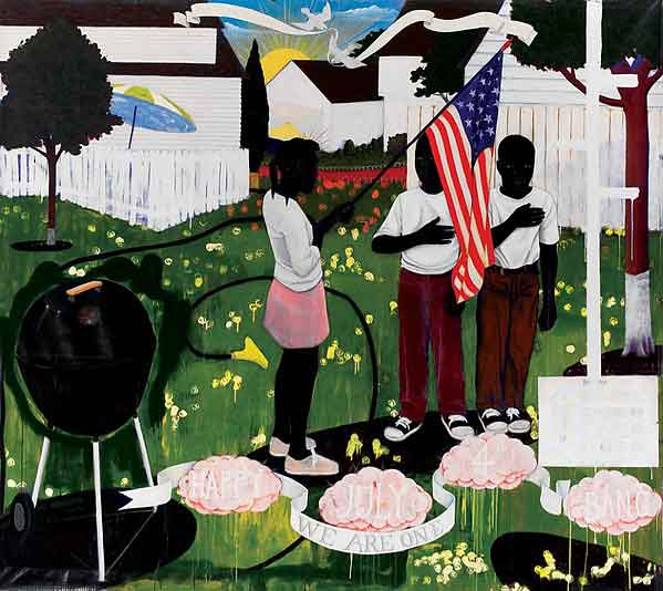نتیجه، مجموعهی کاری شگفتانگیزی است که همزمان پرعظمت و بیتکلف است.» مارشال، که پیش از تصویب قانون حقوق مدنی در بیرمنگام، آلاباما، متولد شده و شاهد شورش «واتز» در ۱۹۶۵ هم بوده، برای زمانی طولانی به شکل خلاقانهای تجربهی افریقاییِ امریکایی تبار بودن را ثبت و روایت کرده است. او برای نقاشیهای تاریخی روایتگرانهی بزرگش شناخته میشود که پیکرهی سیاهپوستان را نمایش میدهد؛ تاکیدی جسورانه بر سیاهپوستبودن در مدیومی که افریقاییهای امریکاییتبار مدت مدیدی در آن غایب بودند.